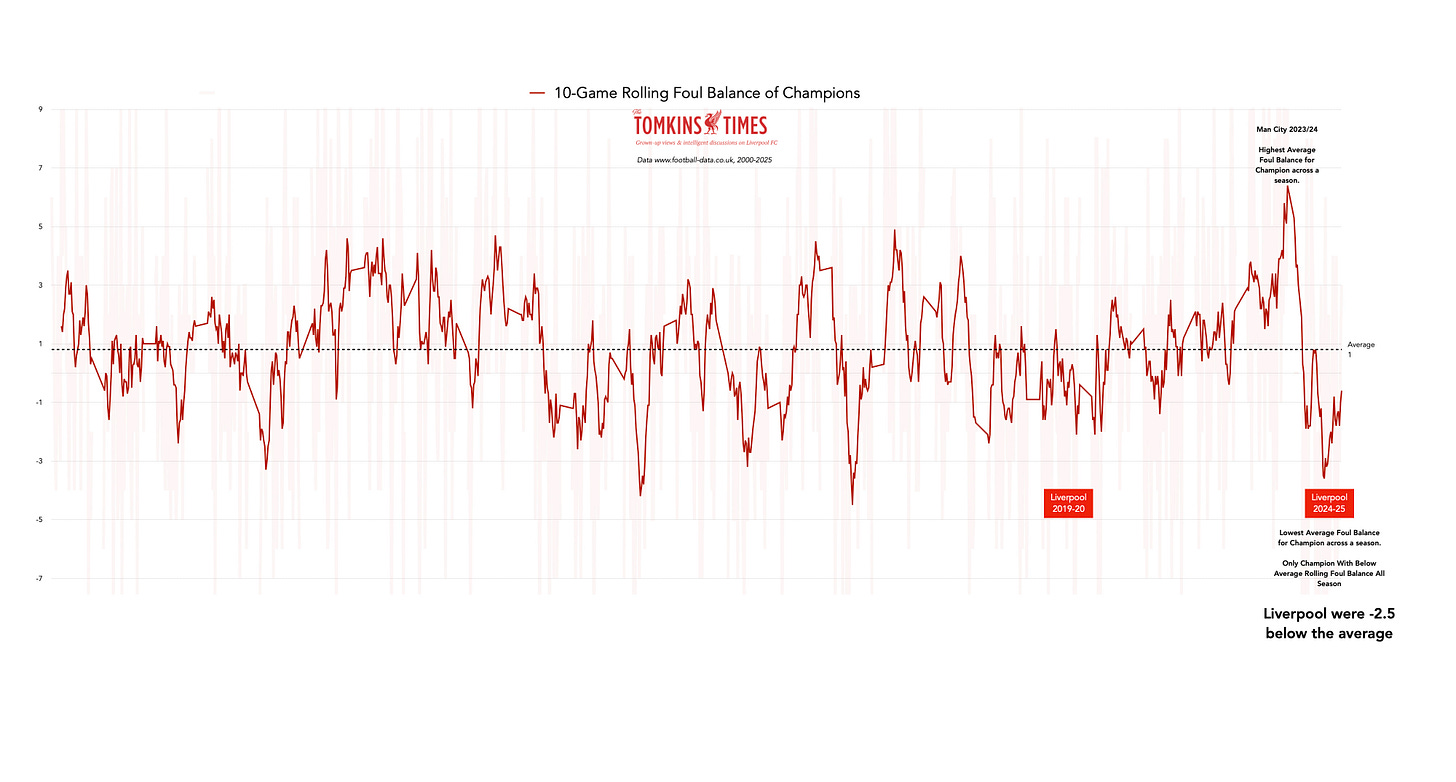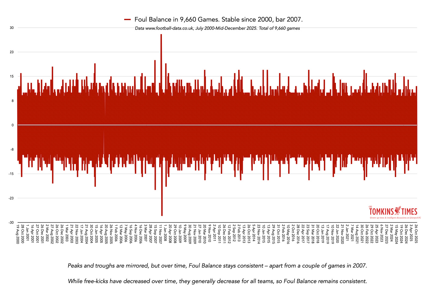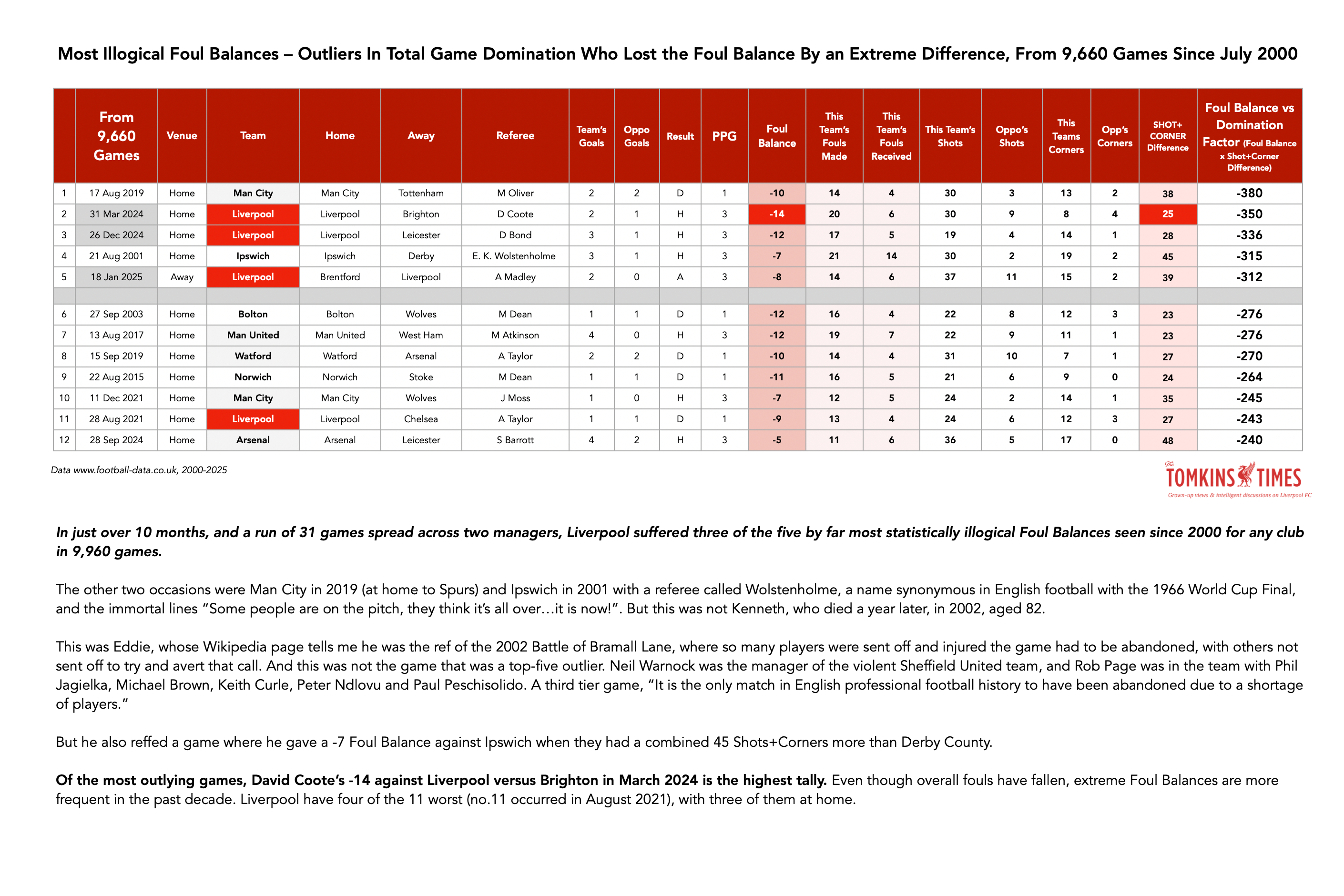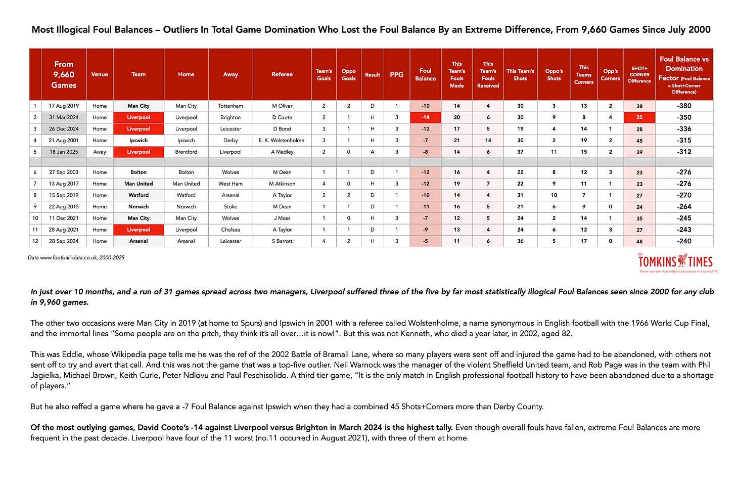 In just over 10 months, and a run of 31 games spread across two managers, Liverpool suffered three of the five (by far) most statistically illogical Foul Balances seen since 2000 for any club in 9,960 games.