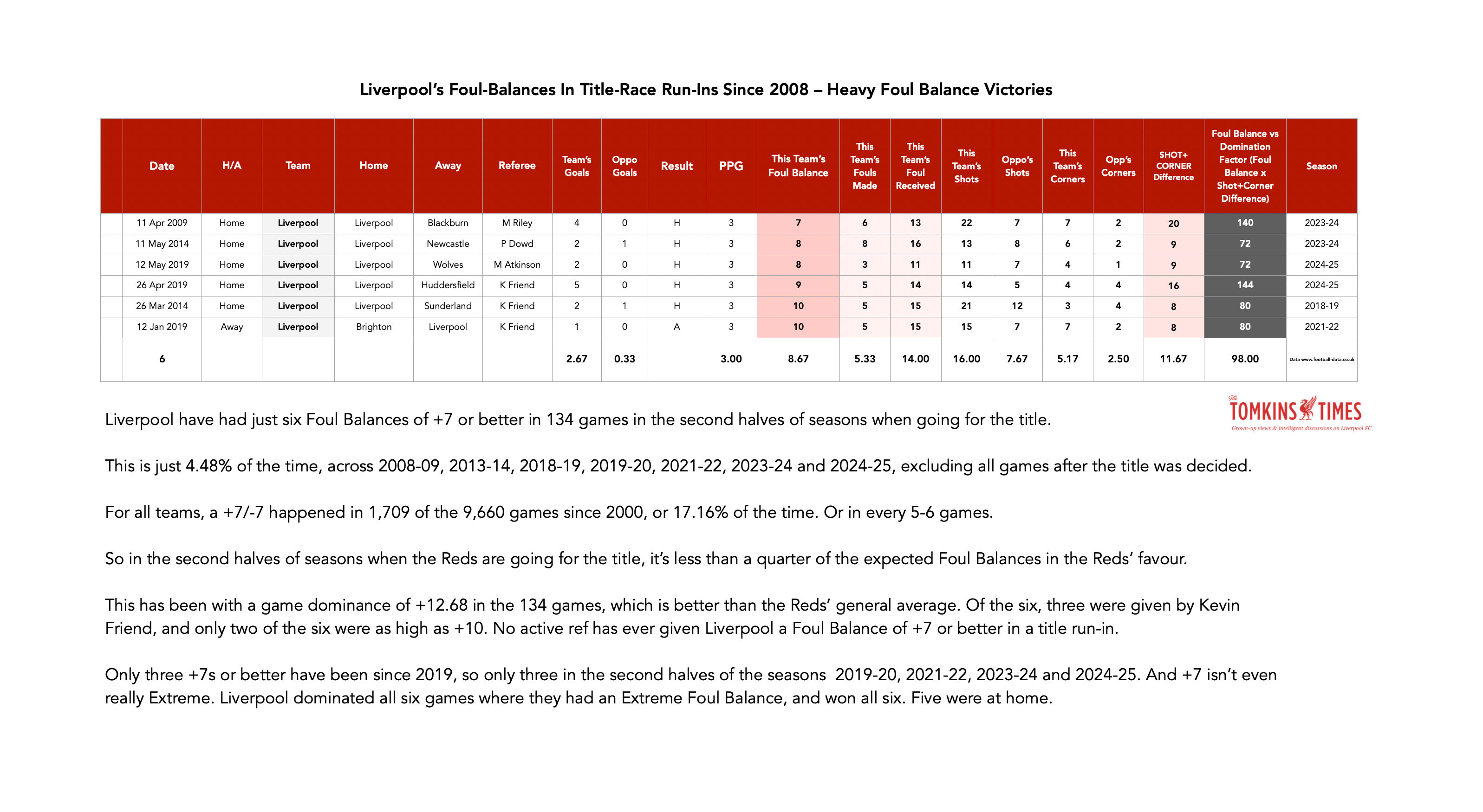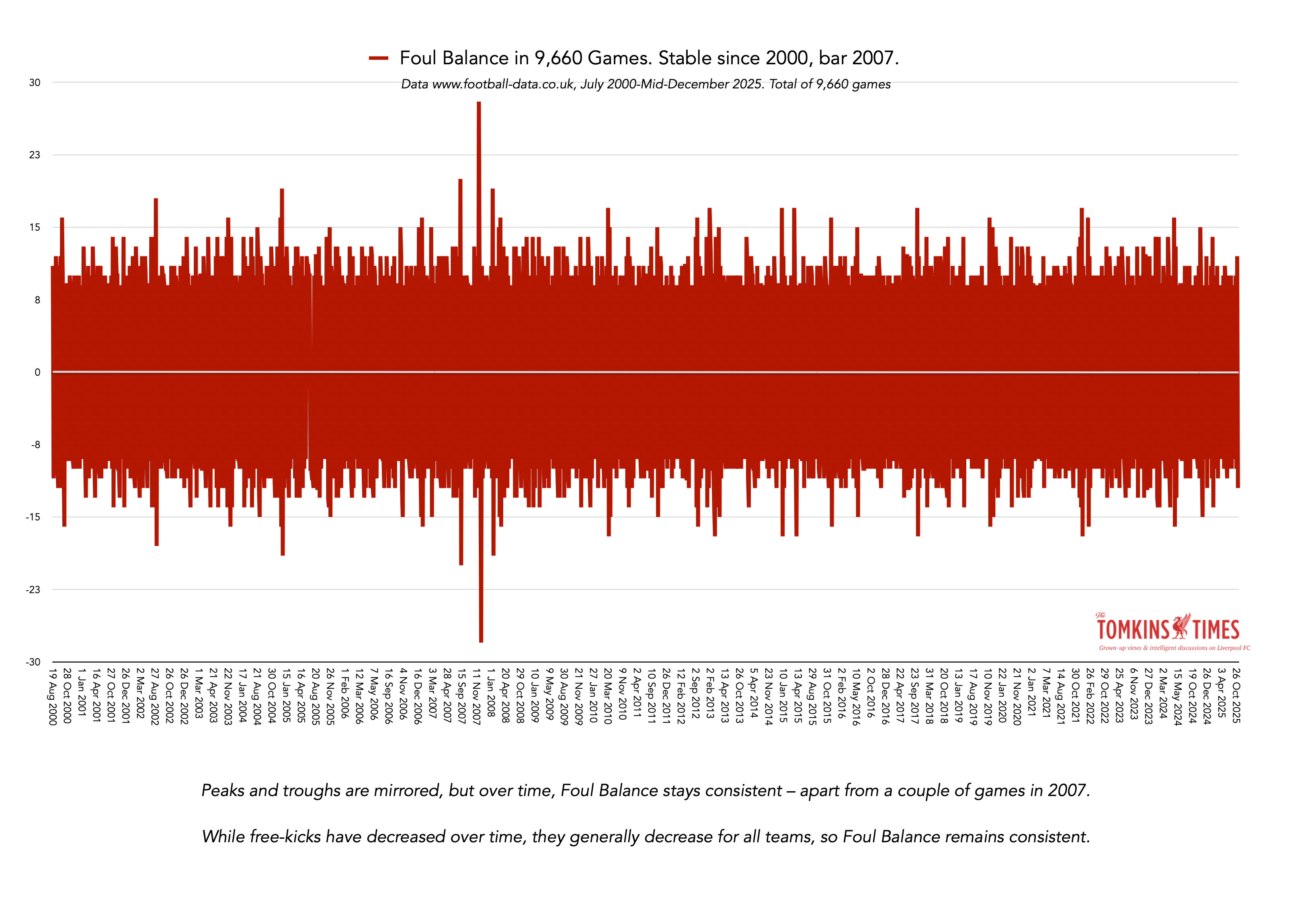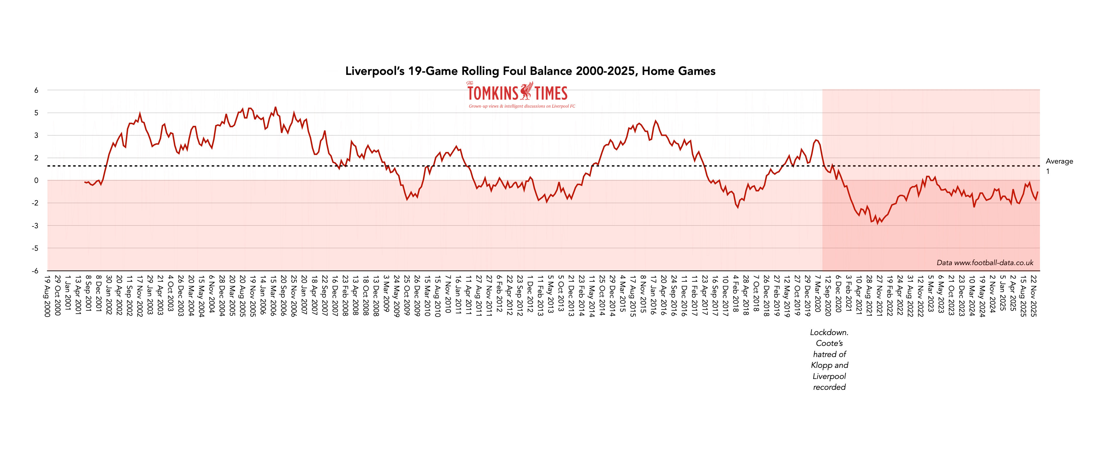 In just over 10 months, and a run of 31 games spread across two managers, Liverpool suffered three of the five (by far) most statistically illogical Foul Balances seen since 2000 for any club in 9,960 games.