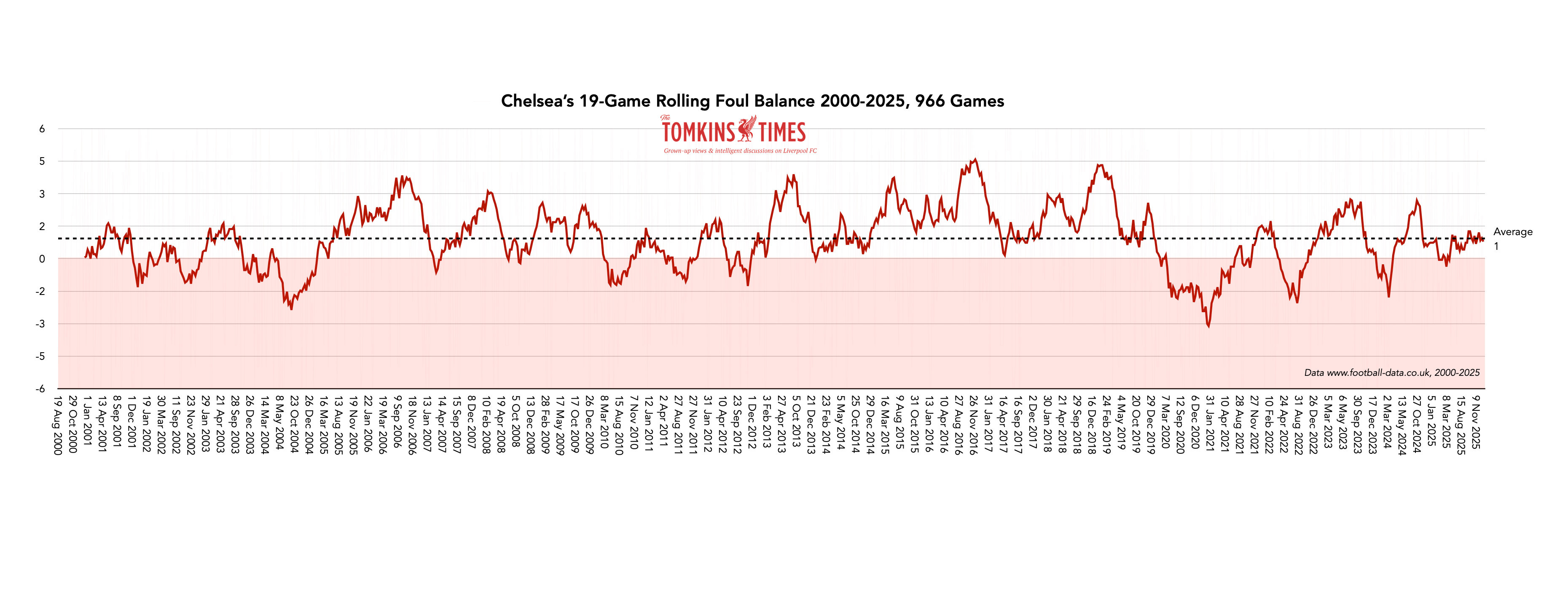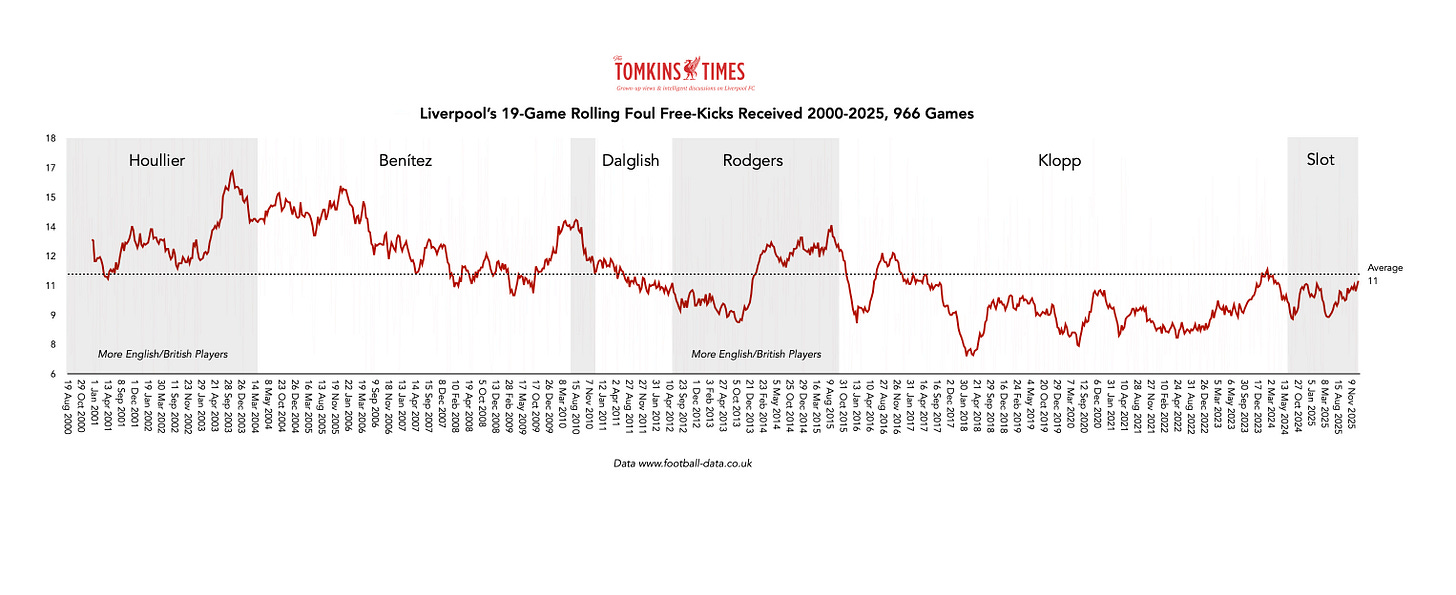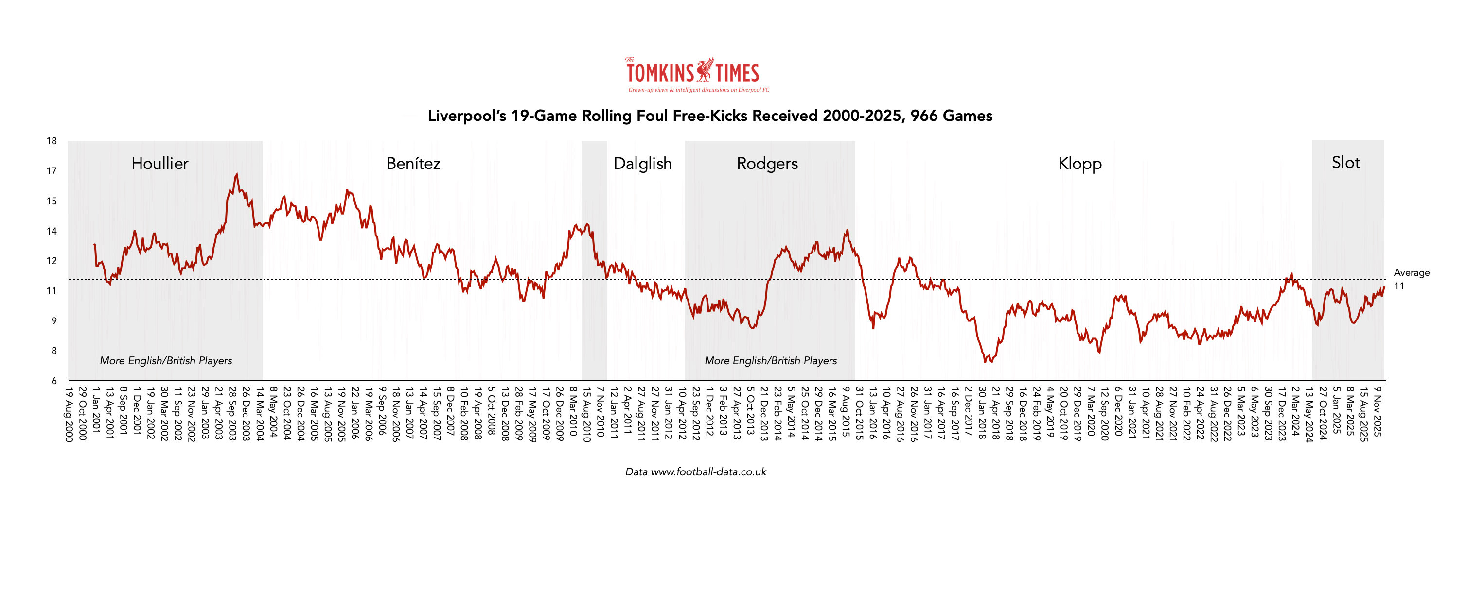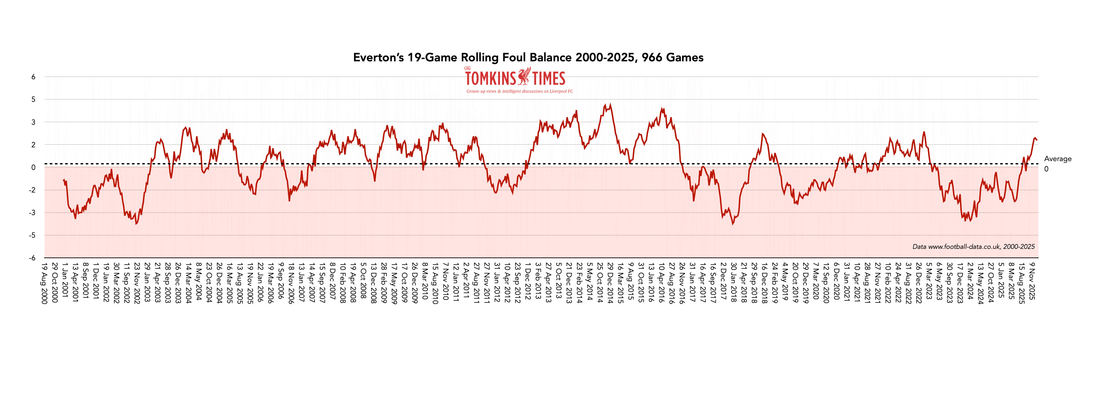 In just over 10 months, and a run of 31 games spread across two managers, Liverpool suffered three of the five (by far) most statistically illogical Foul Balances seen since 2000 for any club in 9,960 games.