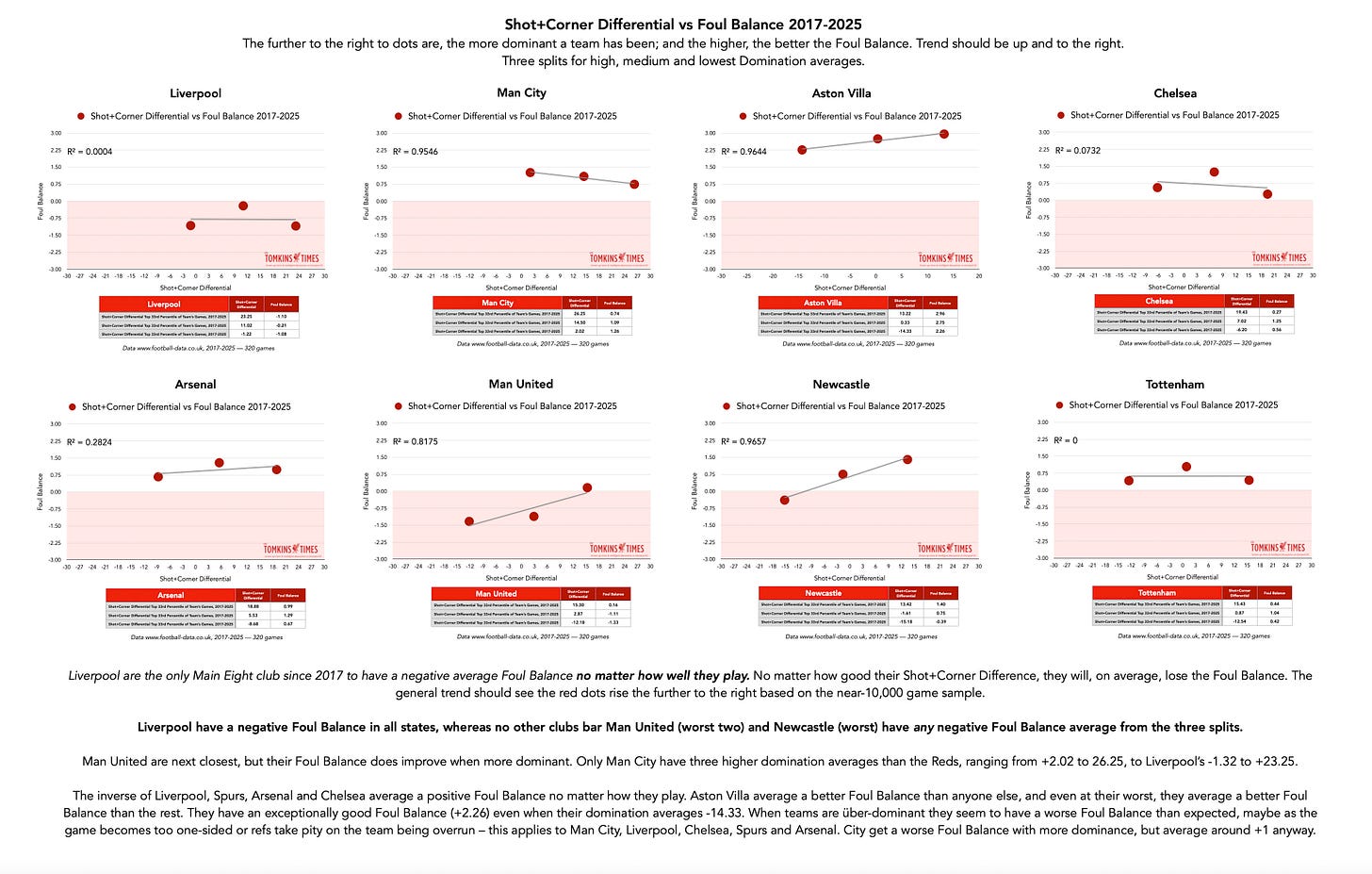 They are not being officiated on what’s happening but what refs feel they can (or want to) give. All graphs should be up and to the right, albeit at super-high possession or domination the Foul Balance can go a bit haywire.